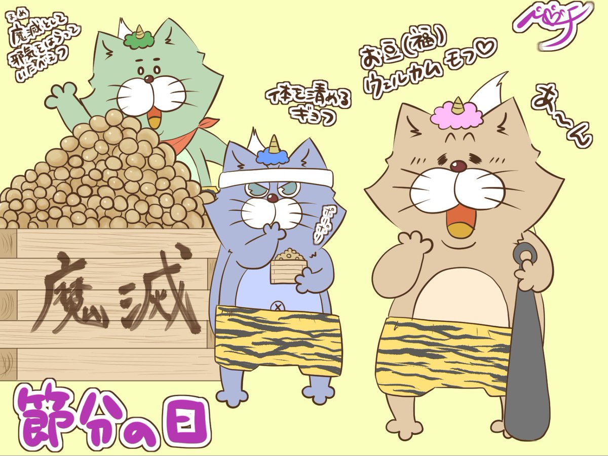 古来より季節の変わり目には邪気が生じると考えられていたためその邪気を払う意味合いから「福は内、鬼は外」との掛け声とともに豆をまくとされているモフ