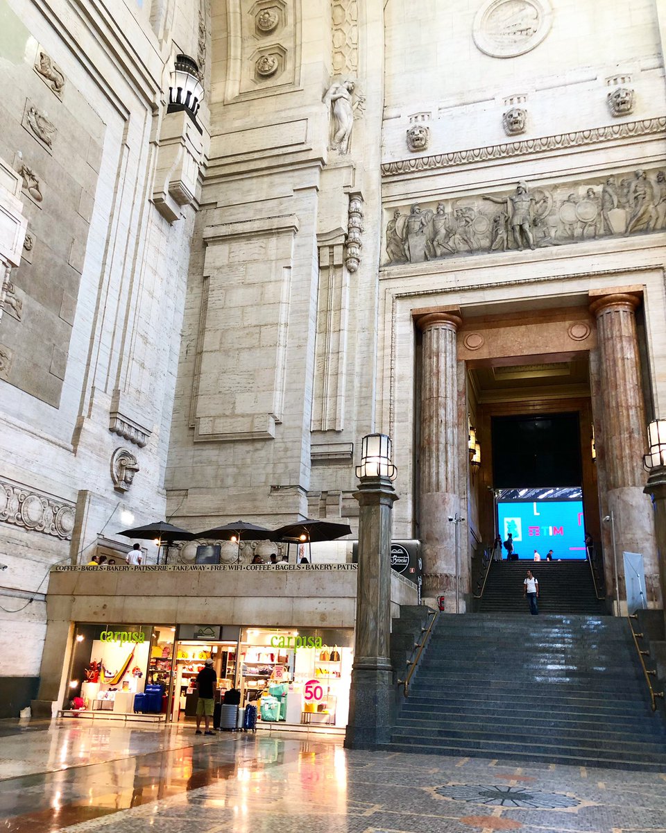 警察 が乗ってきて見回っていく。パスポートチェックこそ無いがピリッとした空気。着いた駅は、この #ミラノ中央駅 。柱のデカさは左下にある店の人間を目安に想像して欲しい。#石丸幹二pic.twitter.com/Oxf3BLfHAT