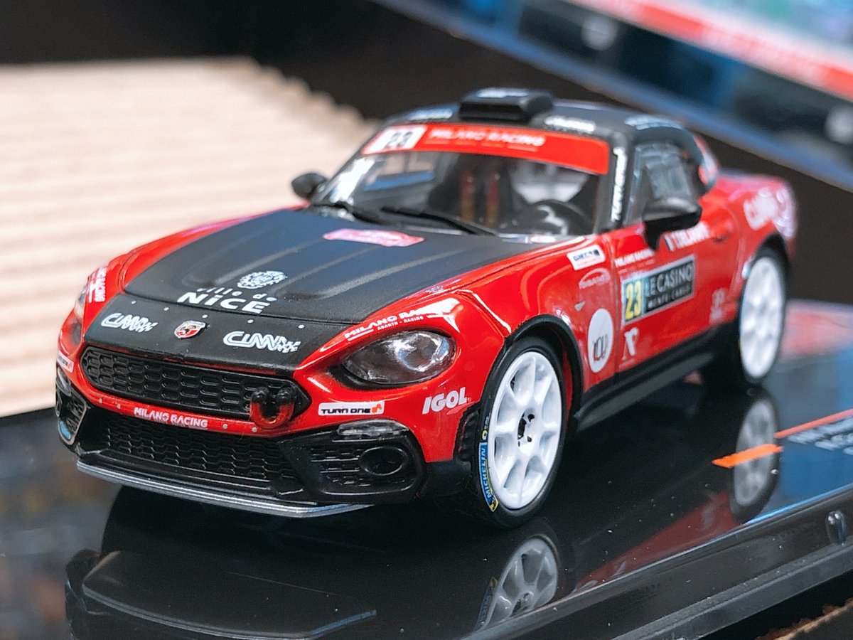 イクソの新商品 フィアット アバルト 124 RGT ラリー・モンテカルロ 1/43スケールが入荷しました!! 2017、2018年のモンテで走ったアバルトがモデル化です!! これは、、、スーパーマン、、、???