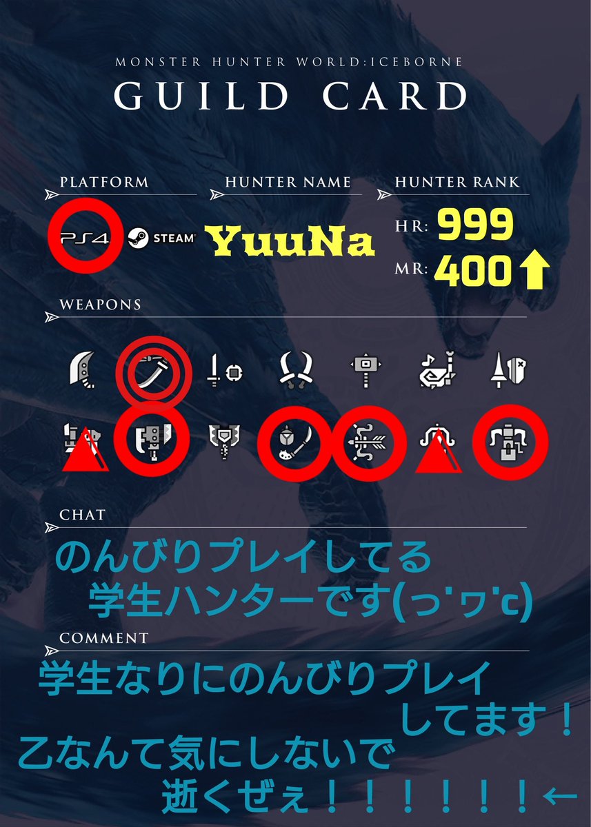 #モンハン募集#モンハンワールドアイスボーン#モンハン自己紹介カード#MHWIB#MHWアイスボーン#MHWIBフレンド募集pic.twitter.com/24tmkV55Dl