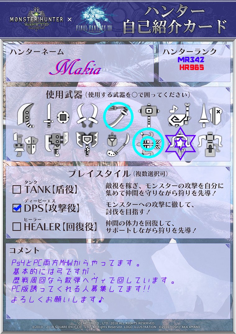 #モンハン自己紹介カード#モンハンワールド#モンハンワールドアイスボーン pic.twitter.com/V0XydygdM3