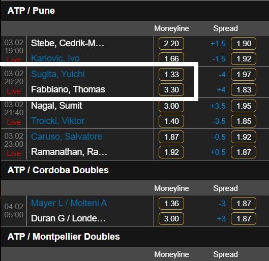 #tennis /#ATP】 From 20:20 today (Japantime GMT + 9), 1 hour later!#YuichiSugita vs#FabbianoThomas#YuichiSugita wins odds 1.33#Fabbiano wins odds 3.3#casinocasino#casino#Asukakirara#錦織圭#ユニクロ#KeiNishikori#Nishikori#テニスウェアpic.twitter.com/JyDB9NFrfh