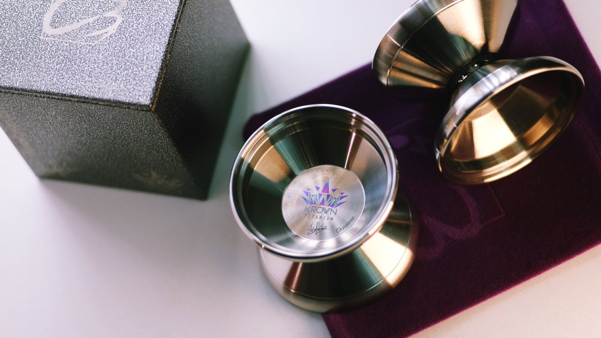 Titanium away in the ultimate premium yoyo. KROWN Titanium, with its legendary design and classic appeal, is the partner you can count on. 6th Feb, worldwide release Dia: 56.5mm | Width: 45mm | Weight: 64.5g JP Pad | Dif KonKave | M4 8mm