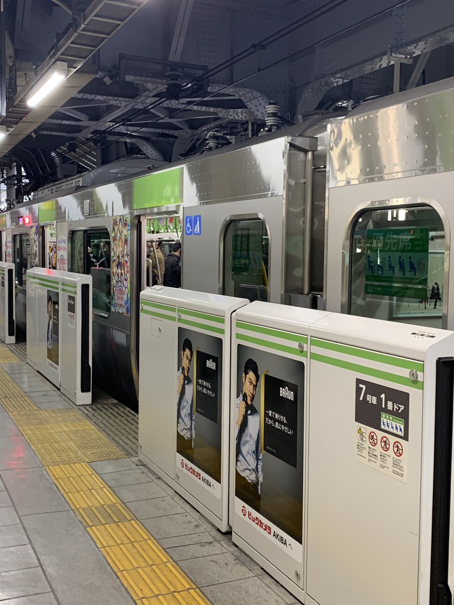 山手線でAqoursちゃんラッピングトレインに遭遇その②(^o^) ちかちゃん☆ 駅で扉開いてるときしか撮れないので難しい…空いてるときに空いてる駅で撮りました(^_^;) 迷惑にならないように気をつけねば…!