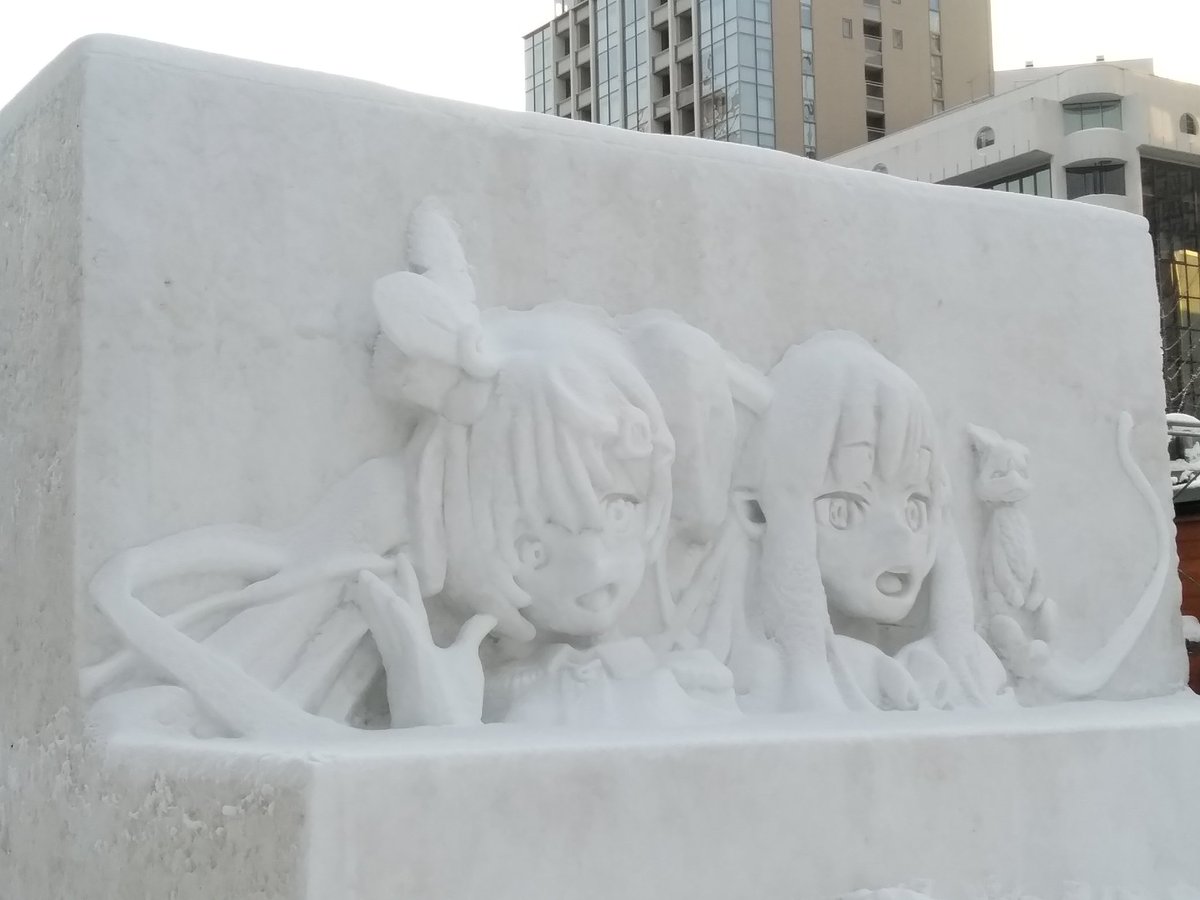 札幌は天気がいいので、エミリア・パック&雪ミクの雪像に会いにきてくださいね。大通7丁目会場のHBCポーランド広場でお待ちしております