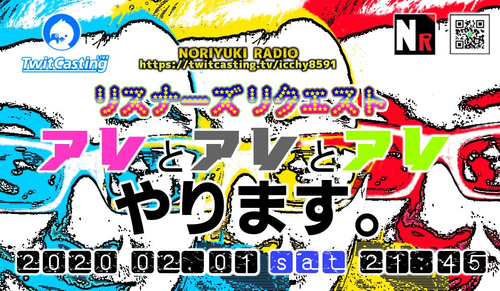 ⚫︎ 2月1日(土) 21:45 - リスナーズリクエスト 〜アレとアレとアレやります。〜 ▶︎https://twitcasting.tv/icchy8591