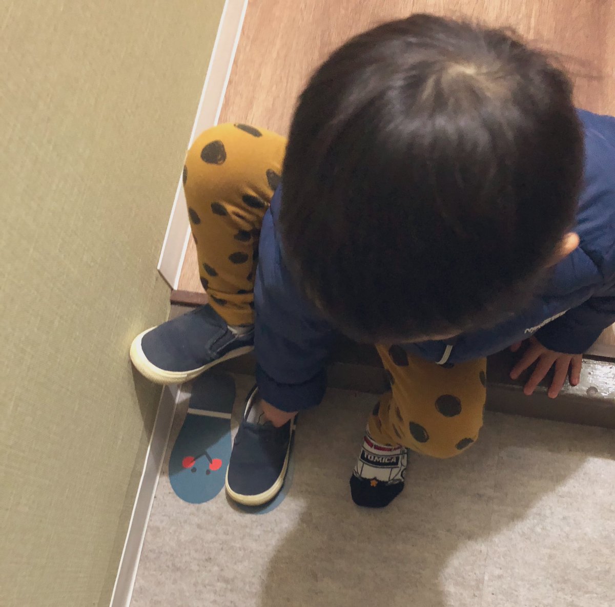 去年の11月くらいから玄関にシールを貼ると、毎日ちゃんと靴を揃えて置くようになった