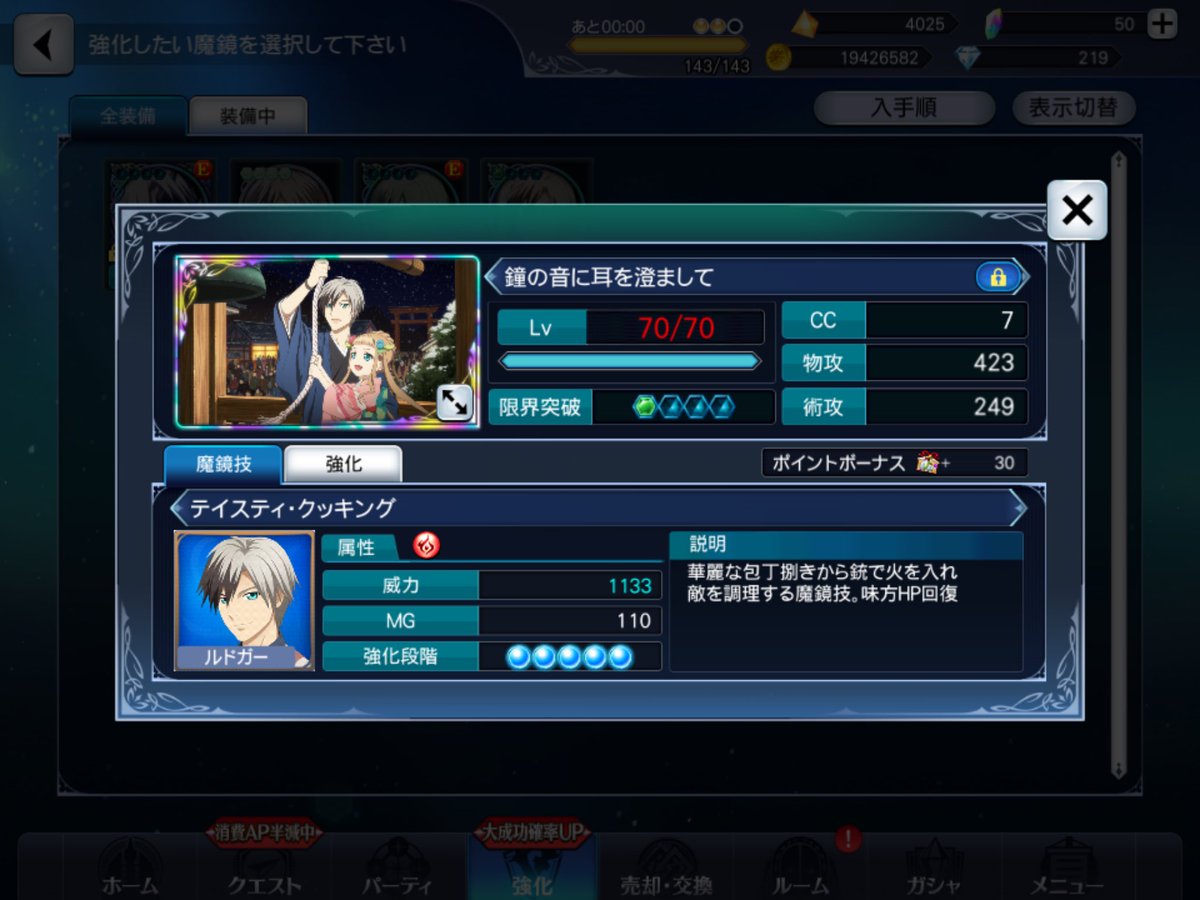 私の初めての魔鏡完凸は ルドガーでした!! ありがとう御座います。 塔はいつもどうりの59階で落ち