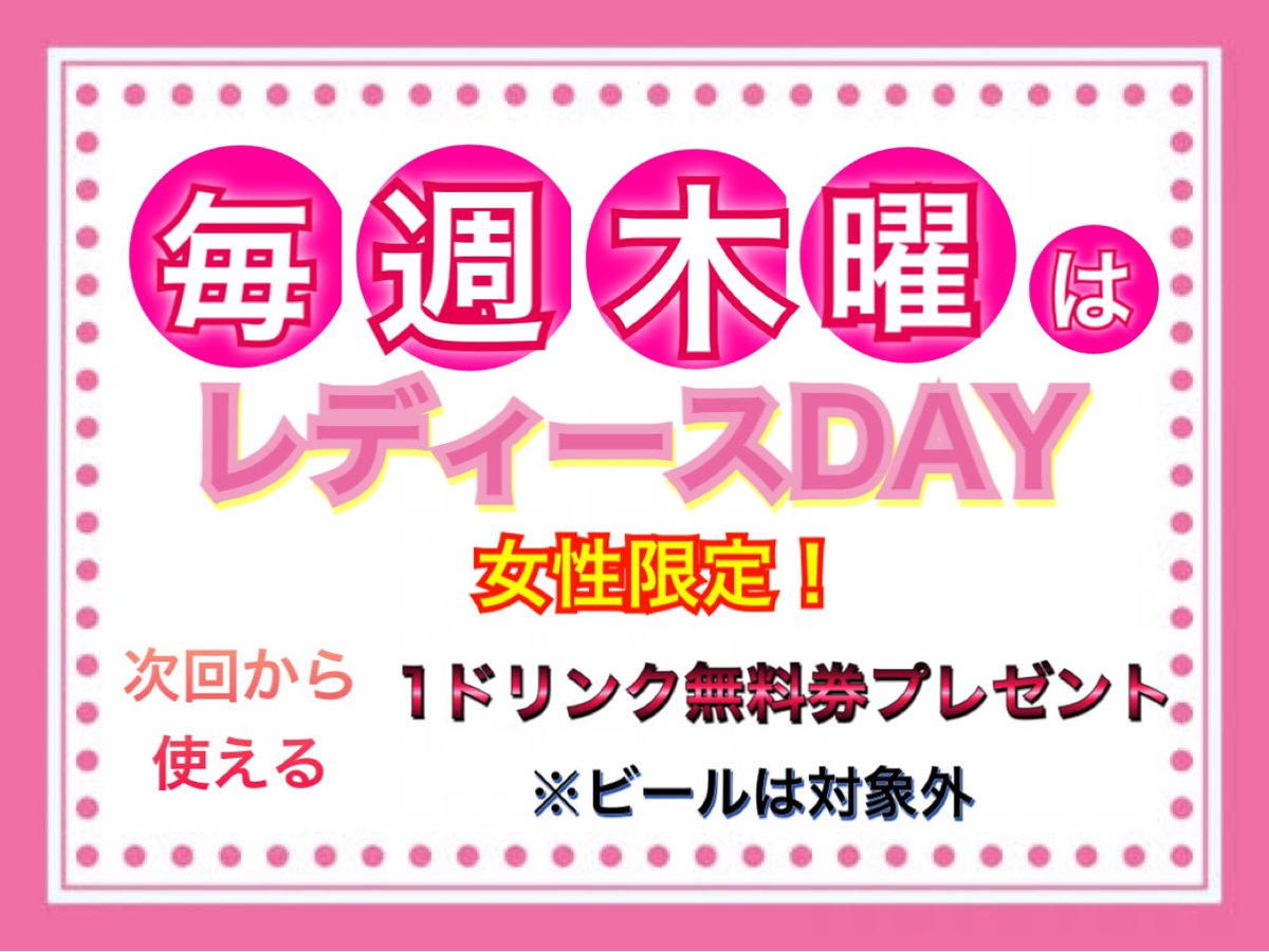 ご来店の女性方全員に1ドリンク無料券を差し上げます