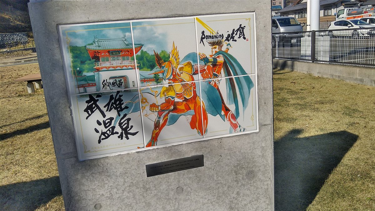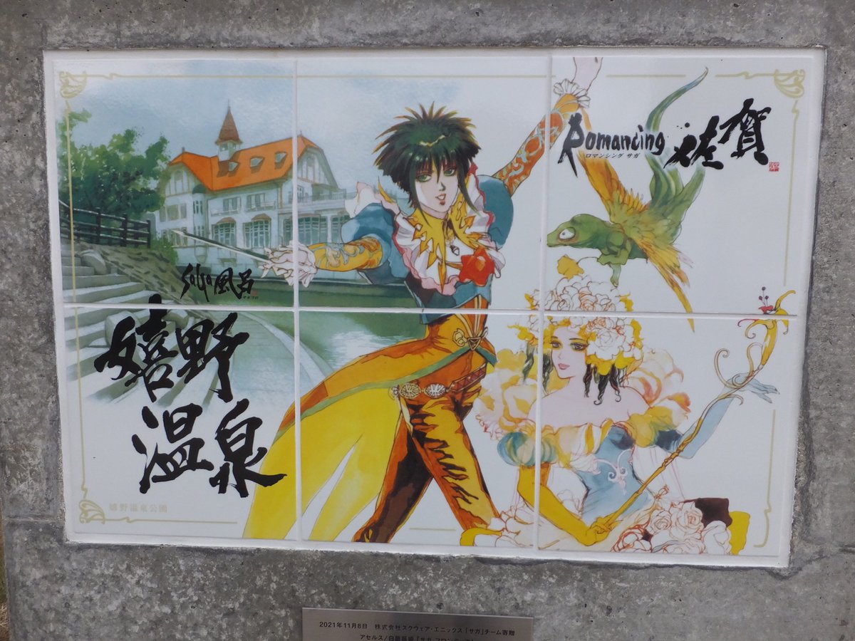 ロマンシング佐賀(嬉野)行ってきたょ♪ 嬉野にはマンホールはなくてアセルスの陶板と佐賀コラボのキャラ達が出迎えてくれました
