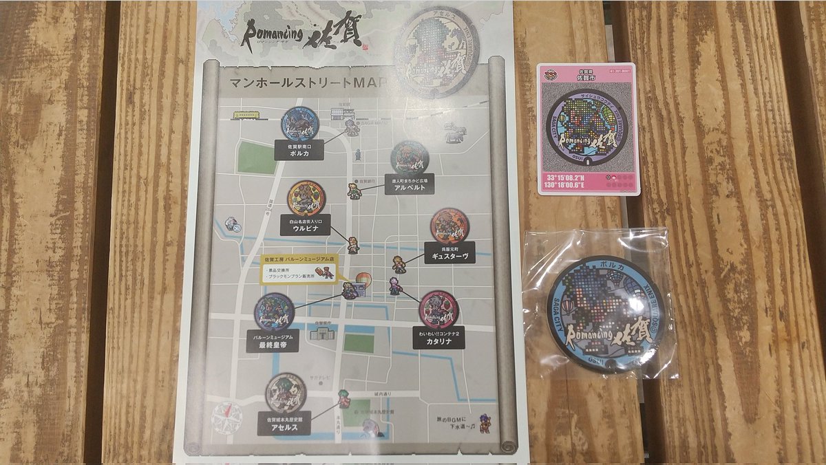 #ロマンシング佐賀』とな。世界観に違和感を感じるのと、反応する世代に佐賀ありすぎやしませんか。取り敢えず駅前の陶板とマンホールは佐賀せました。 『ねんがんのアイスソードをてにいれたぞ』←言いたかっただけ pic.twitter.com/6KbD4EnqyZ