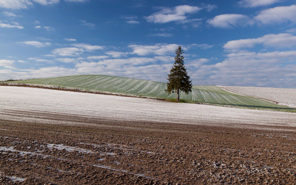 丘の光景〜真冬 畑が雪に覆われる冬はどの時間帯でもどこにカメラを向けてもフォトジェニック