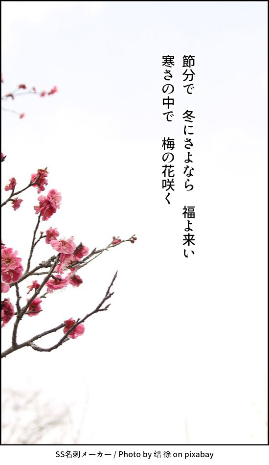 #一行だっていいんだ詩#フォエム52 さよなら 節分で 冬にさよなら 福よ来い 寒さの中で 梅の花咲くpic.twitter.com/rzkeEiNMRr
