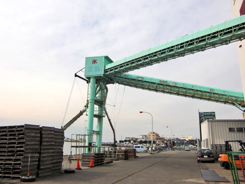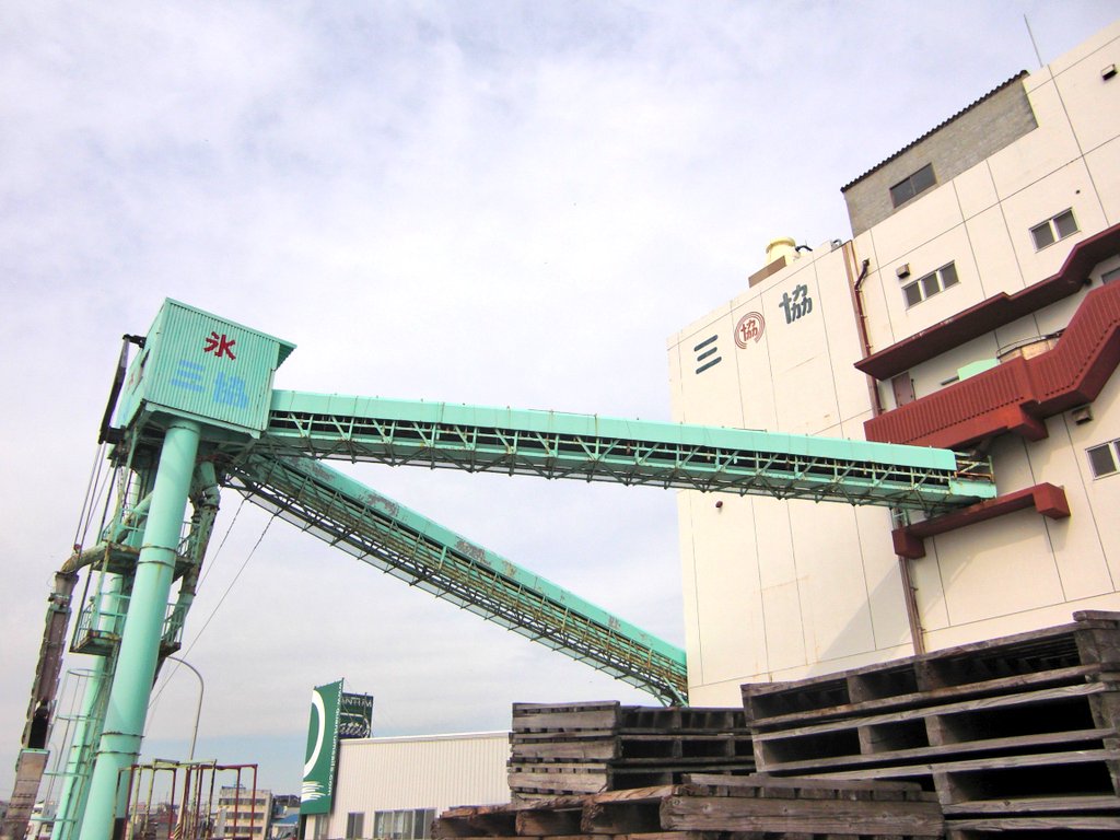 2枚目の製氷所には当時は漁船に氷を送るコンベアがありました。 この後何年かして訪れた時には撤去されていました。 4枚目は現在の様子です。