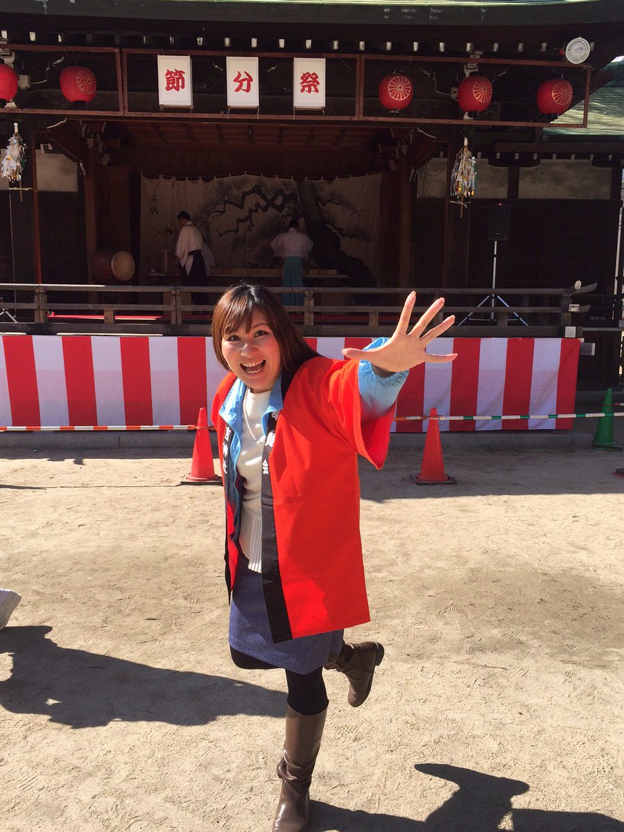 上田恵子さん、KBCラジオ「ガブリナ」を背負って元気いっぱい豆まきをしました!ゲットしたあなたは幸福になれるはず!! #KBCラジオ#ガブリナ#豆まき#上田恵子 pic.twitter.com/mH1rxU6tUl