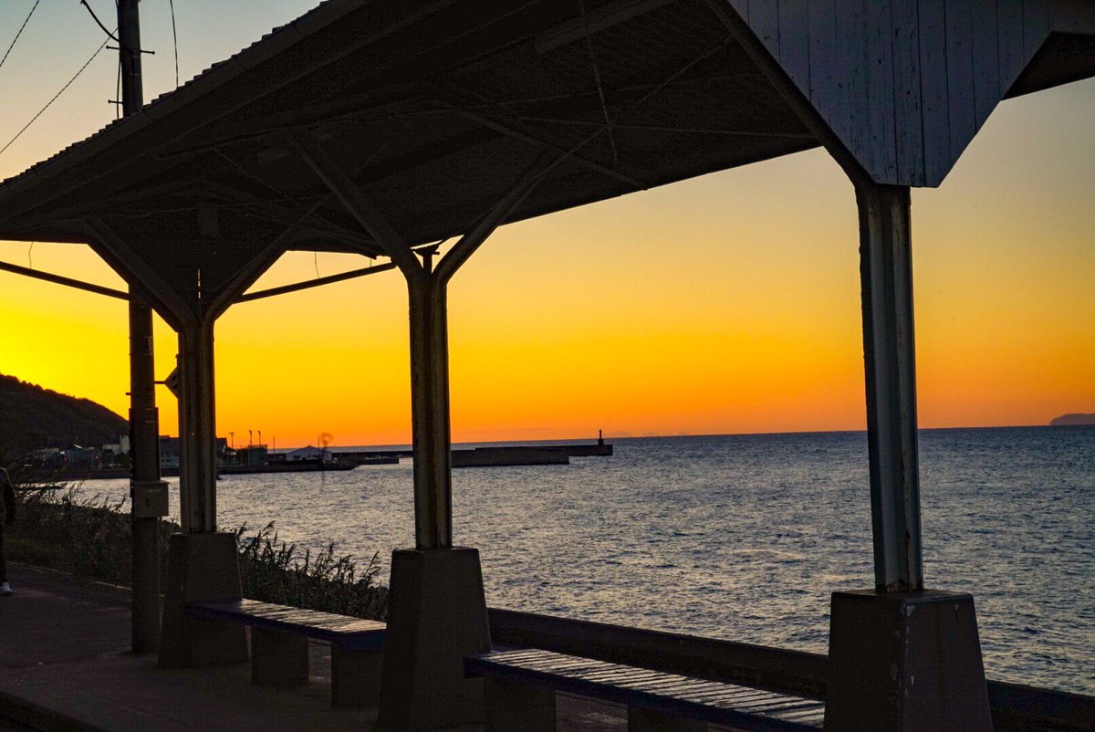 ちなみに、下灘駅から見える夕日は海ではなく山に沈んでいきます。pic.twitter.com/CoDV7RqBQx