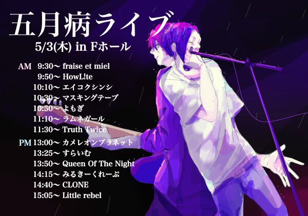 【お知らせ】 5/3(木)に五月病ライブがあります!! Fホールライブラストの3年生バンドも、学年が上がって成長した2年生バンドも、見なきゃ損ッッ!!!