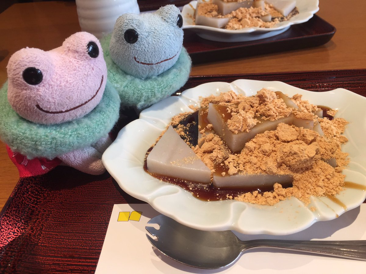 #ラフロツーリング部#雨男キモト 甘い物食べて気分転換~♪#川崎大師 名物の#久寿餅 いただきますヽ(*´∀`)ノ きな粉餅と冷やし抹茶もセットでウマ~(*´ω`*) pic.twitter.com/MlBzEW5HFp