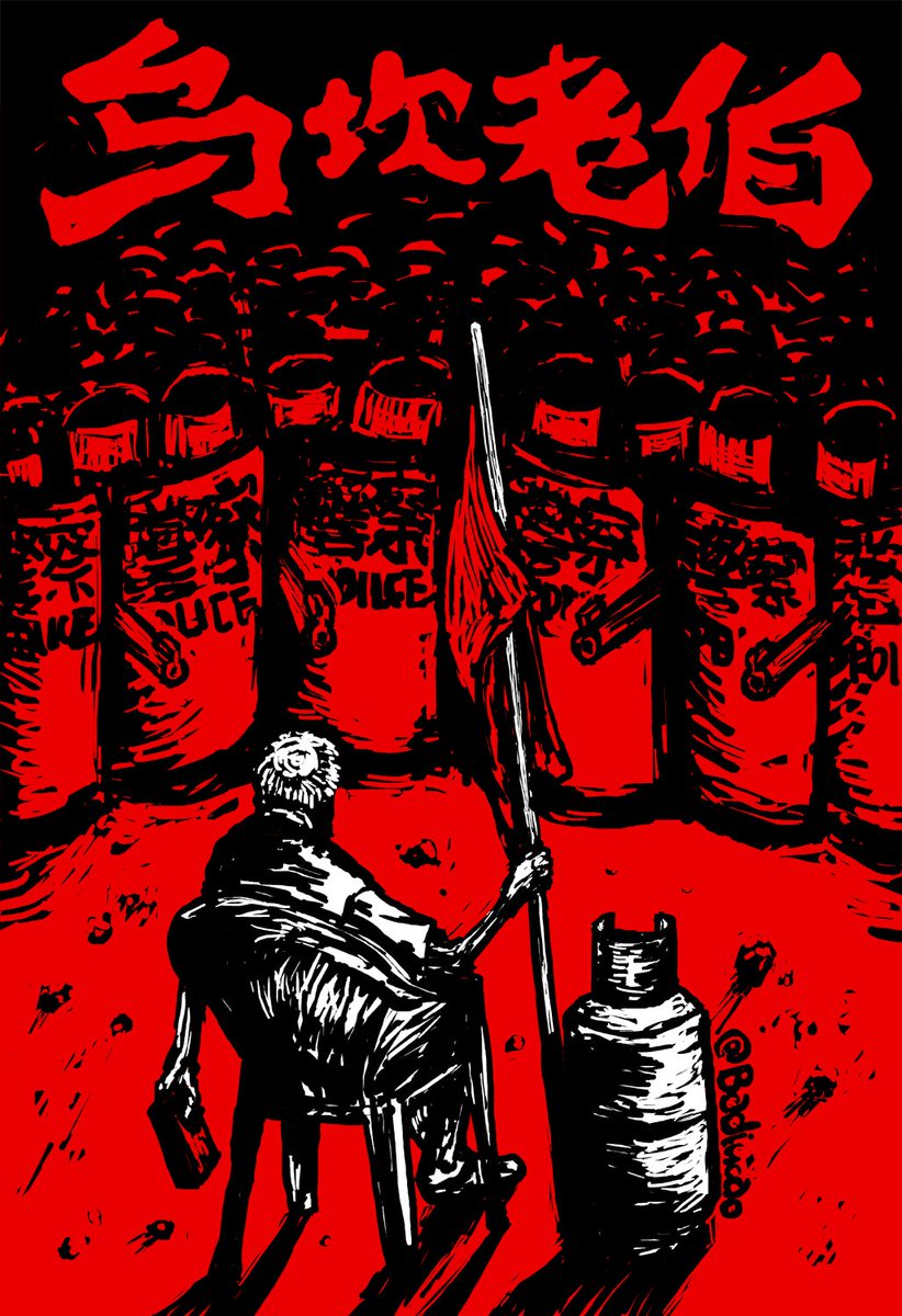 #badiucao Cartoon for supporting villagers in#Wukan 漫画 【乌坎老伯】枪林弹雨,催泪瓦斯,#乌坎 的乡民依旧团结,这幅画送给所有坚持抗争的乌坎人#巴丢草pic.twitter.com/l6w7bMDTIl