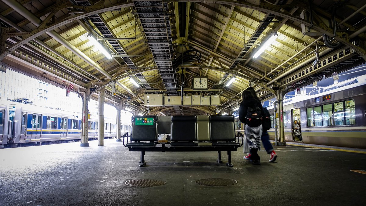 なんか、京都駅の奈良線ホーム東端のベンチ、電車に囲まれながらも人も少ないし、落ち着きますなぁ