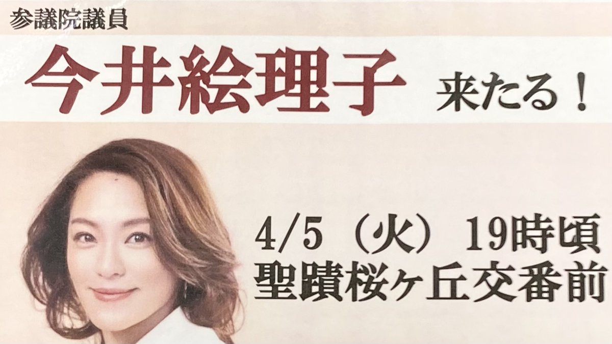 本日、県議会議員選挙の街頭演説に元SPEEDの今井絵理子議員が応援に駆けつけてくれました!! 県議会になると有名人も駆けつけてくれるんだなぁ……