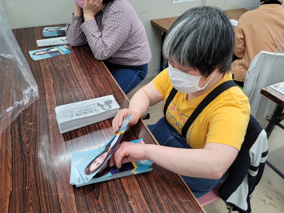 #今井絵理子 さんからお仕事のご依頼をうけました!早速事業所のみんながお仕事していて頼もしかった。 あと、姉はSMAPしか知らないと思っていたので、SPEEDを知っていて安心しました