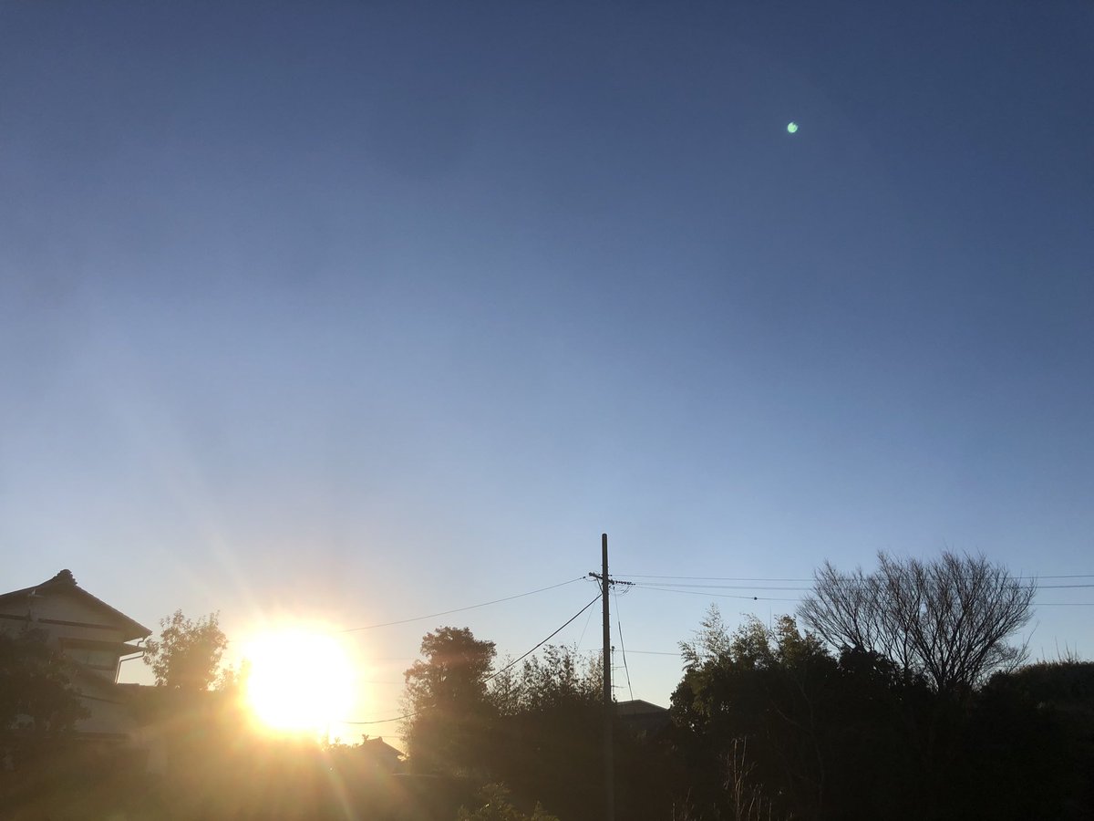 節分の今朝空 日の出前からお日さまの左側に出ていた虹色のかけら 朝虹かと思っていたけれど、どうやら46度ハロのかけらっぽいみたい 綺麗な虹色が長いこと出ていました