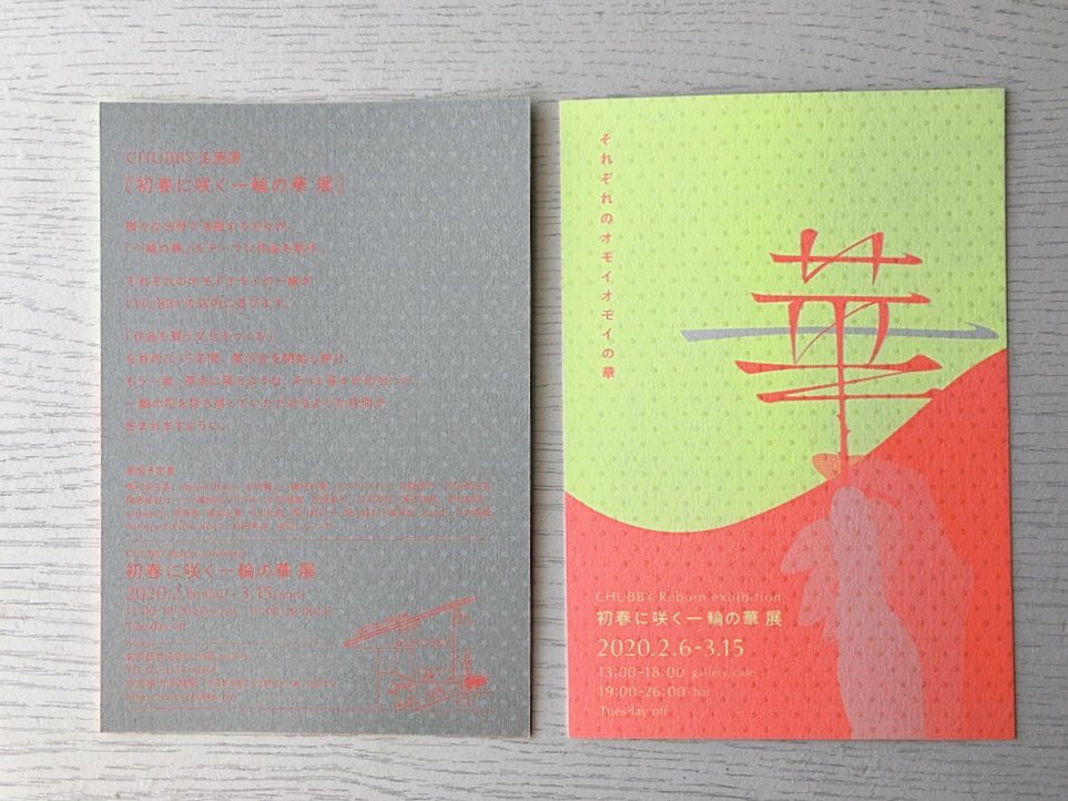【Exhibition 】 初春に咲く一輪の華 展 2020.2/6〜3/15 13:00〜18:00 gallery, cafe 19:00〜26:00 bar 火曜日定休 東京都世田谷区大原2-27-9 chubby *火曜日は定休日です。