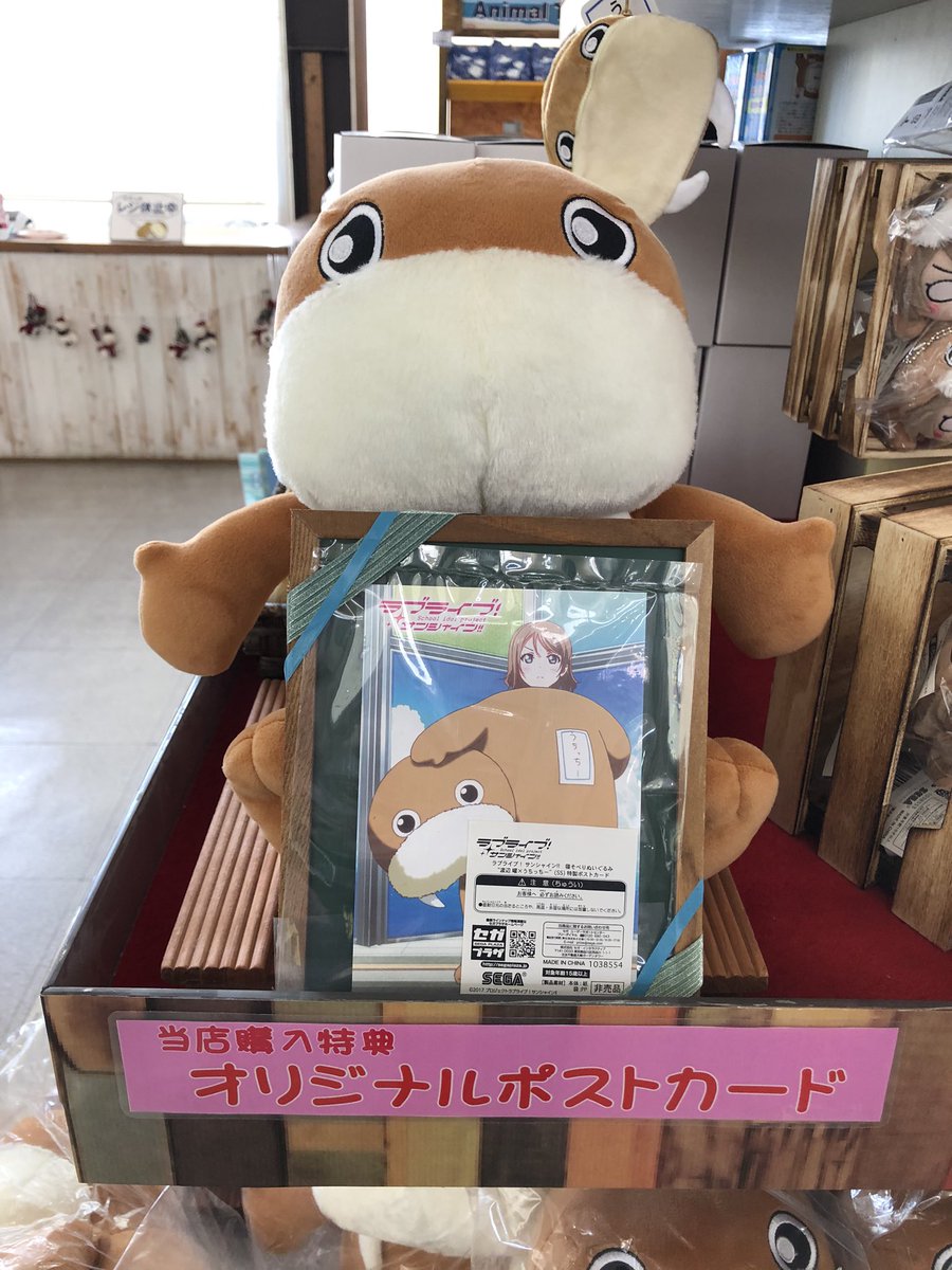 伊豆・三津シーパラダイスで曜ちゃんのうちっちー寝そべり(SSサイズ)が販売中、みとしーと購入すると特典のポストカード付いて来るずら