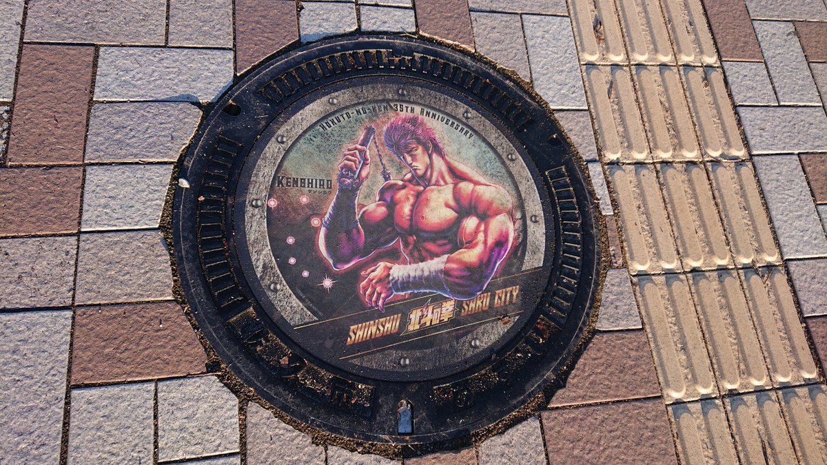 噂のJR佐久平駅まえ「北斗の拳」マンホール