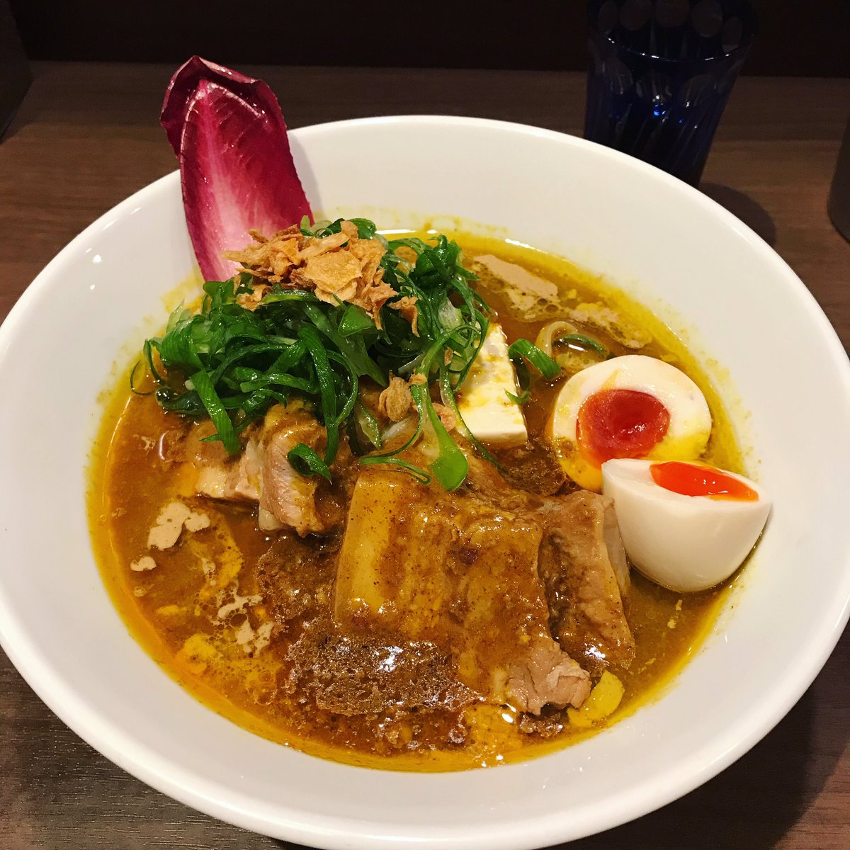 #八咫烏 和風ラーメンというのでラーメン2杯+の連食でも楽勝とフルコンボでオーダーしたら苦戦したでござる(´-`)汁そばなのにイベリコ豚の油そばの様でした アブラがウマイ!カレーじゃないバージョンでも食べてみたいぞ!! pic.twitter.com/A65BqsLrow
