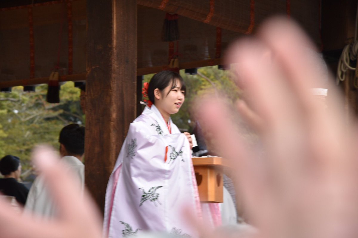 今年も来たで…! 舞妓さんの奉納舞踊なんかなかなか見られへんからなぁ 意外とみんなマスクしてへんのやな