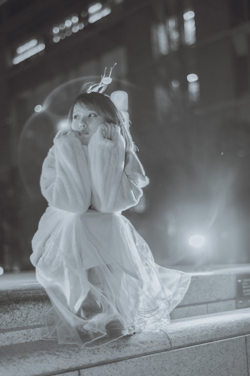 東京駅で。 初モノクロをチャレンジⅥ 夜のストロボもかっこいいかも。 2020/0202 夜 model : ゆいさん