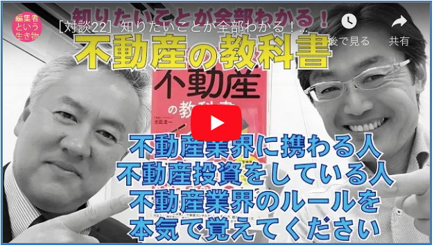 「知りたいことが全部わかる!不動産の教科書」の内容紹介動画ができました!著者の池田浩一さんと、不動産業界、不動産投資に携わるすべての人へ、不動産・不動産業界について熱い思い、書籍の見どころを対談! https://youtu.be/hF6ZcqOSjJM