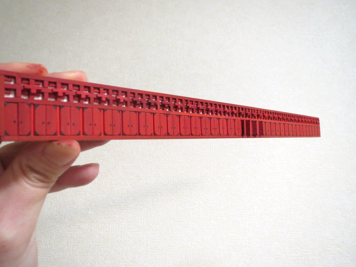 今年の作業で一番苦労した創建期の姿を推定再現した朱色の三十三間堂。とにかく、とてつも長〜く数ミリ単位の肘木、扉を一個一個付けていく工程は根気、体力を要すると改めて実感。撮影として延々と続くアングルは好きです。一部浮いて見えるなぁ…