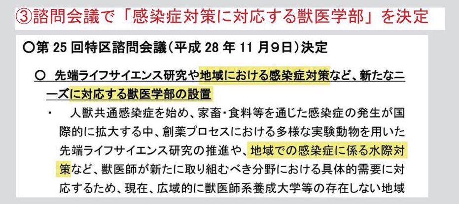 #加計学園獣医学部 ゴリ押し認可にやはり文科省の 圧力的な発言があった 二次審査の段階で是正2でアウト そこで2つめの指摘が出た時 同席していた文科省から 『人事構成が不十分で不可になった前例が無い』 この一言で是正1、になり認可 この一言がなければ不可確定 総理のご意向は、生きていた pic.twitter.com/YstFlv2Ezn