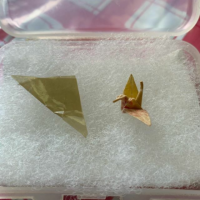 先日、super view賛同アーティストでもある佐々木祐滋さんに見せていただいた折鶴。 佐々木貞子さん本人が折った折鶴です。 左のは折りかけの折鶴。 胸を掴まれたような気分になりました。 YJ