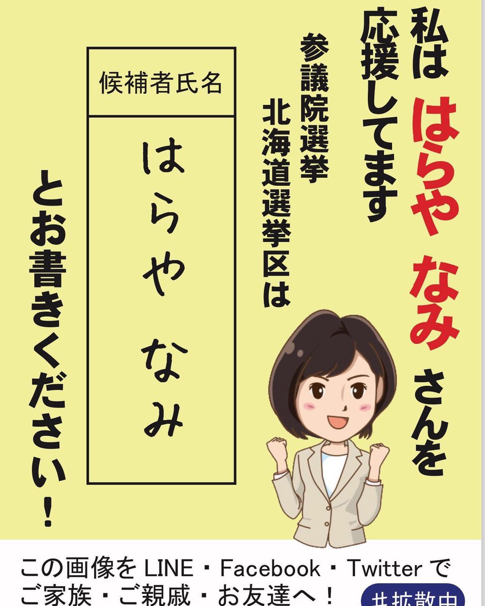 #はらやなみ。#参議院選挙#参議院選挙北海道選挙区 https://twitter.com/Haraya_Nami/status/1137691576908386304 …