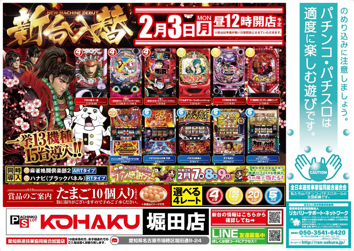 #花の慶次~蓮#いつもと違う時間に開店#2月3日新台入替#コハク堀田店#名古屋市 導入機種はコチラです