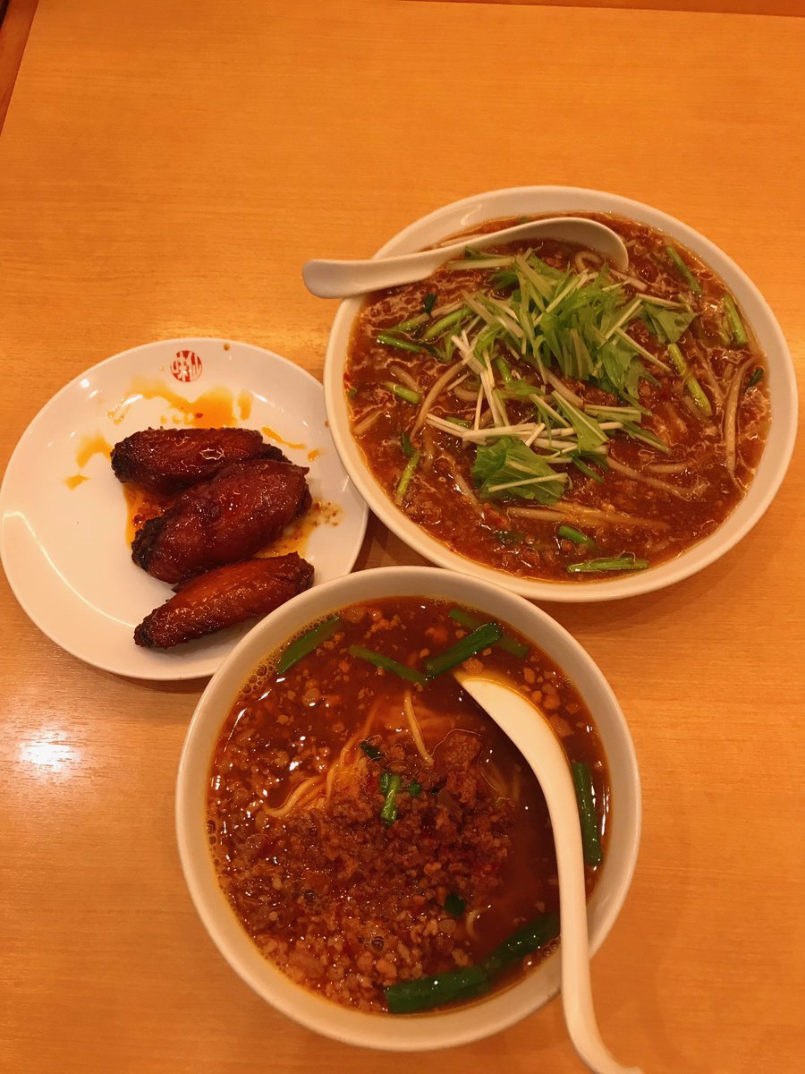 ラーロージャンメン(辣肉醤麺)ラーロージャンメン(辣肉醤麺)+手羽先(紅醤鷄翅) at 味仙 中部国際空港店