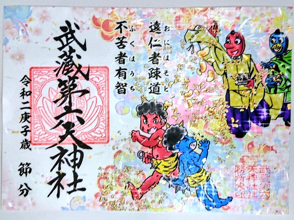 #埼玉県 さいたま市 武蔵第六天神社 節分祭の限定御朱印を頂きました。 (無くなり次第終了)「おにはそと ふくわうち」の言葉の意味の説明が 入っており感激