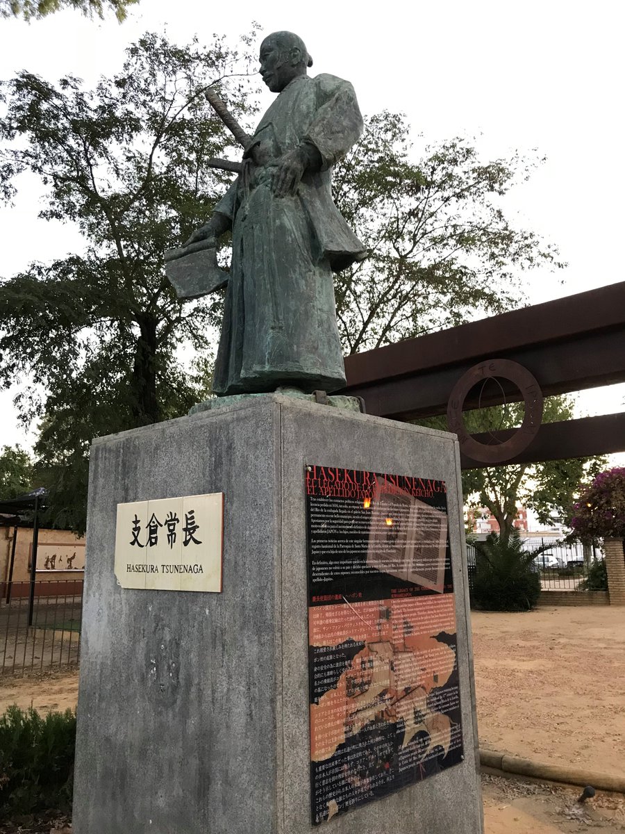 南欧巡礼4日目3。スペインのセビーリャ郊外リオに慶長遣欧使節・支倉常長像と鳥居!使節8名が当地に残り今住人六百人がハポン(日本)姓。セビリア大聖堂に王が担ぐコロンブス棺。画家ムリーリョ墓跡は彼の記念館に。夜、原爆被害の特番が放送されスペイン人の平和への意識の高さを知る