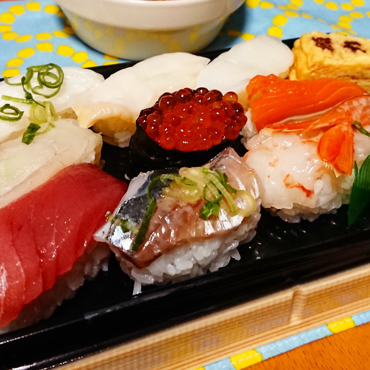 昨日の晩ごはんは家に帰ったら、お義母さんが買ってくれたお寿司がありました