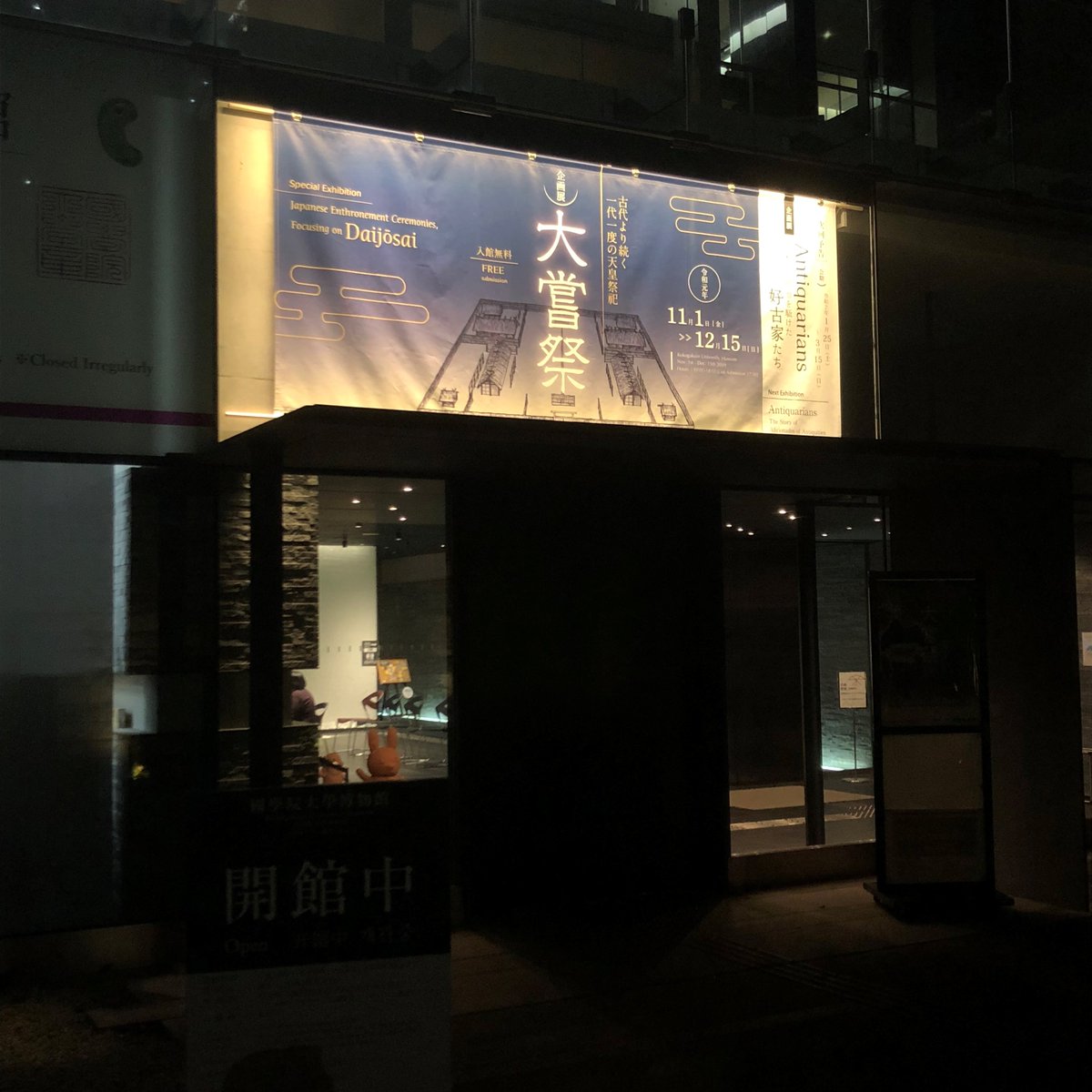#大嘗宮 の一般公開は昨日で終了となりましたが、当館の企画展「大嘗祭」は今月22日までとなりました。この機会にぜひ理解を深めにいらしてください。明日は笹生館長によるナイトミュージアムトーク!なかなか知る事ができない#亀卜 についてお話をします!#大嘗祭#國學院大學博物館pic.twitter.com/jtNtc6CxW6
