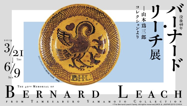 没後40年 「バーナード・リーチ展 」山本爲三郎コレクションより 大山崎山荘美術館 2019年3月21日(木)-2019年6月9日(日) https://www.asahibeer-oyamazaki.com/sp/tokubetu/41057/ …