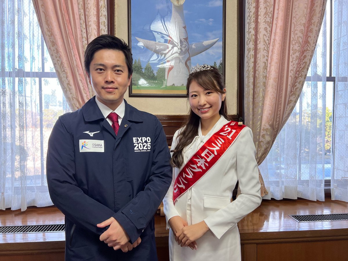 #ミス日本 グランプリの松井朝海が、大阪府の#吉村知事 を表敬訪問いたしました! コロナ対策の政府広報などを務めてきた松井さんに向けて、知事からは任期全うのねぎらいのお言葉をいただきました。 ミス日本は1970#大阪万博 に関わりが深く、#2025大阪万博 成功にも協力していきます!pic.twitter.com/Z5yuB7WbrM