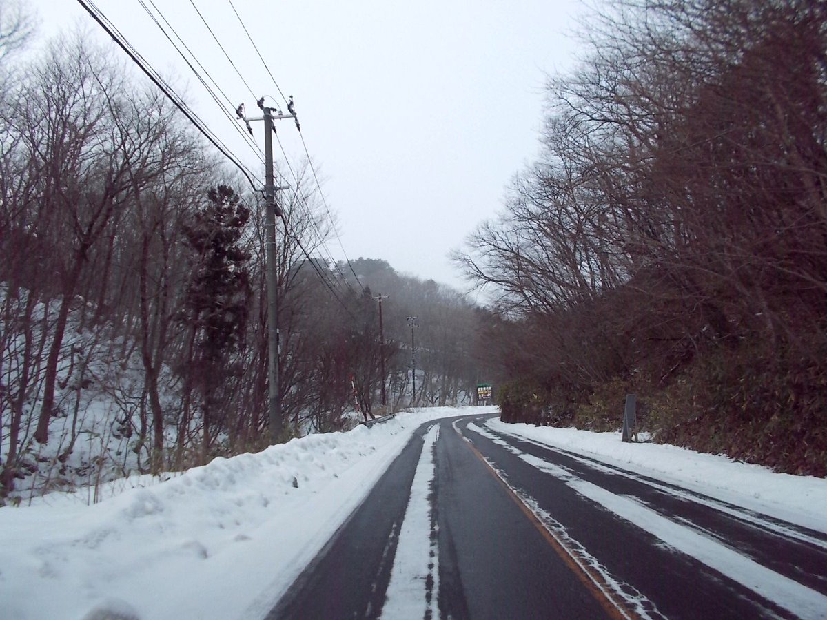 朝の高湯温泉は吹雪。気温は-1.2℃。風があります。昨晩の積雪が少し道路にありますが今のところ問題ありません。 写真は朝の高湯温泉風景。