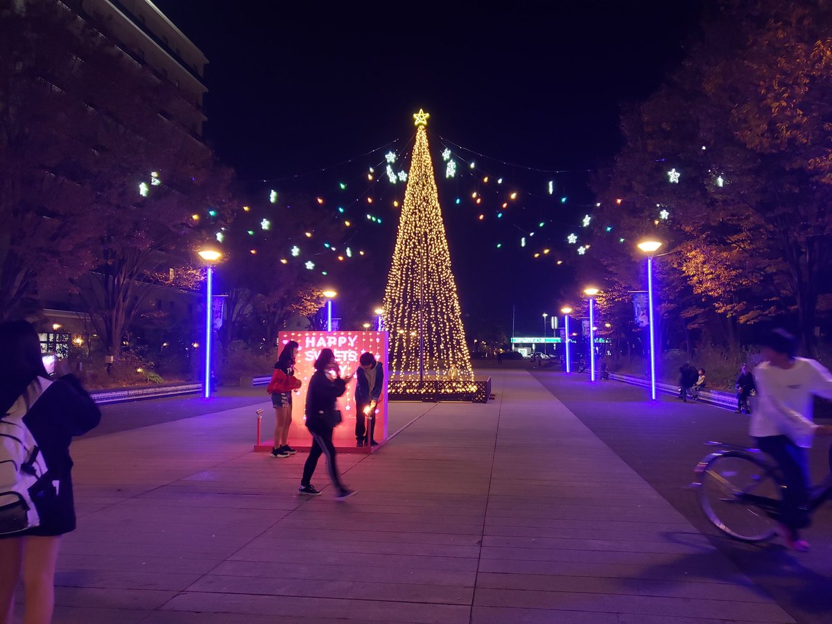 #東海市#太田川 イルミ点灯式! 人いないタイミング探すの難しいw 限定スイーツ即完売、屋台で一瞬で2000円消えてしまった!! 小さい子供たくさん走り回ってて、いつもよりキラキラ女子が多い太田川
