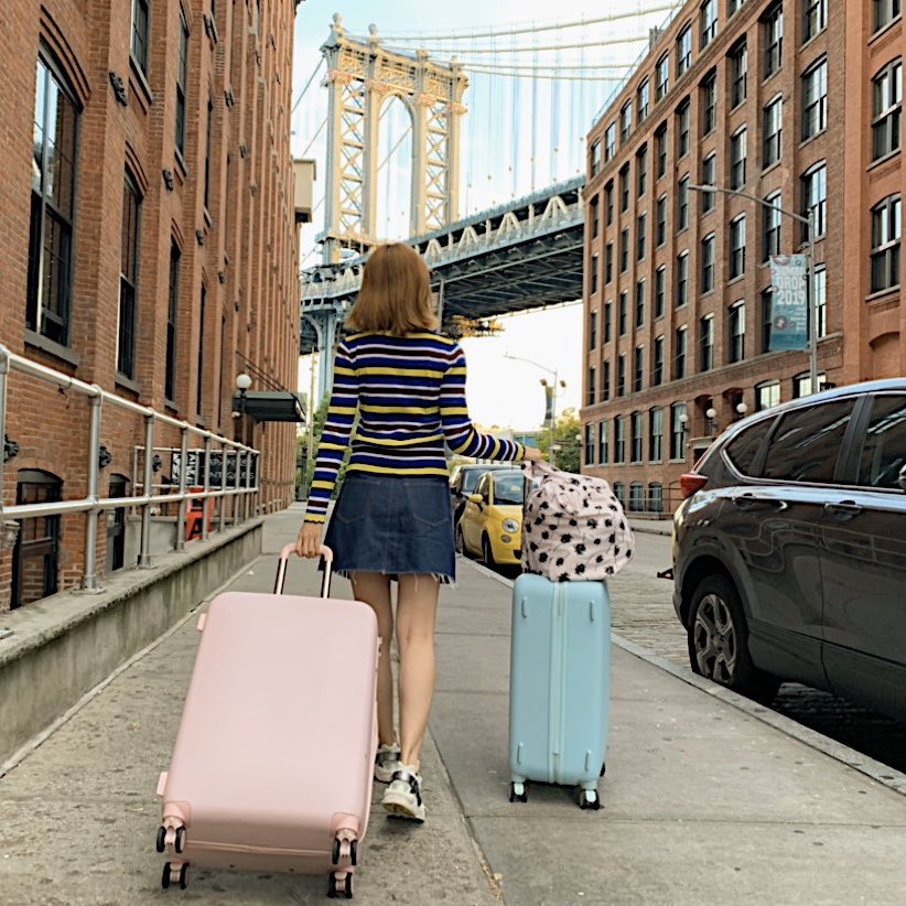 ブルックリン橋のベストスポットはダンボのココ! 〒11201 New York, Brooklyn, Washington St, Manhattan Bridge Photo Spot Awwのスーツケースが映える