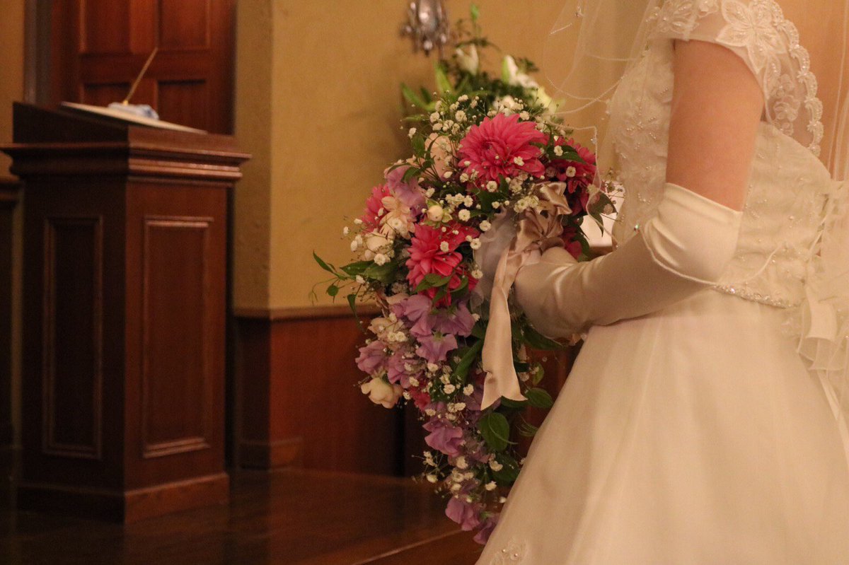 ちなみにウエディングブーケは 妃海風ちゃんが退団時にお持ちになっていたミッチャンのダリアをメインで風ちゃんに敬意を表して挑みました。もちろんお辞儀は娘役スタイルですよ膝プルプルしてこなしましたよ。